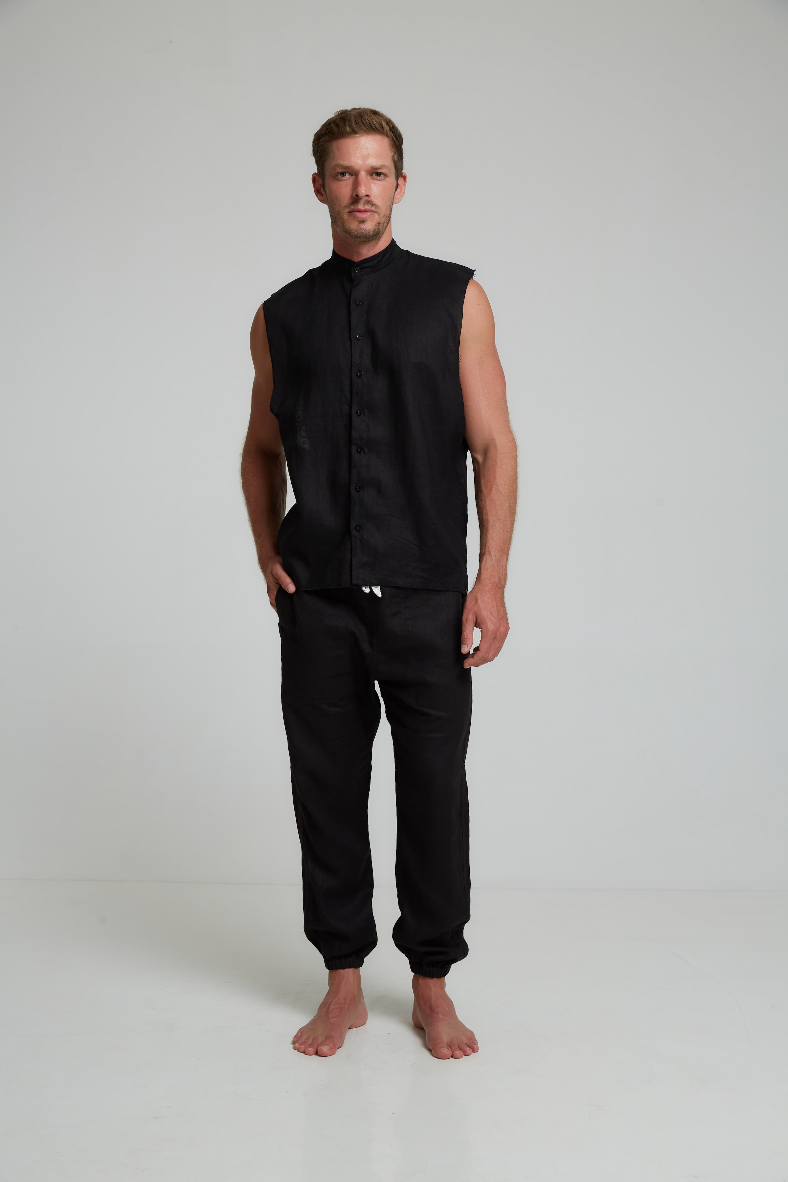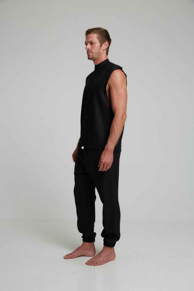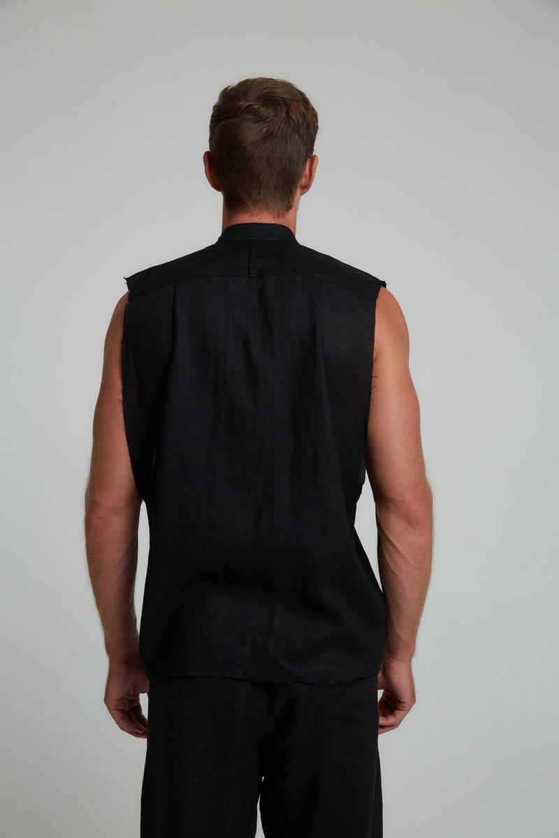 GUNS SLEEVELESS LINEN SHIRT IN BLACK